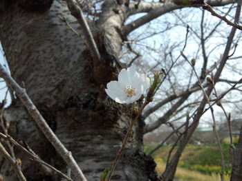県道の南側は散歩コースで無いので確認をしておりませんが県道の北側の桜並木のうちの3本の木に開花を確認致しました!