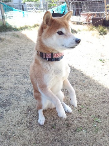 はまぞうさんのブログ「さんたのこと。とか。。。2」でお馴染みの二本足でしっかりと立つことの出来る柴犬の「さんた」と日中の散歩中に会う事が出来ました!