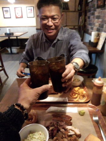 そして!本日は一緒に食事をしようと言う事になり彼のリクエストで私のお客様でもありヤマハ発動機ジュビロのラグビー選手も訪れるというメッチャアメリカンなバーべQのお店「ハッピーデイズ」さんに行くことに!