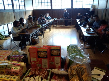 その後それぞれ全国各地よりお持ち頂いたお土産や恒例の「大ジャンケン大会」のお宝を竹の丸さんよりお借りしていた部屋に運び込み全員一度テーブルに着いて頂きました。