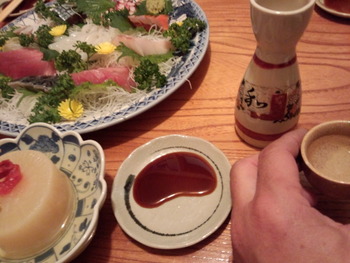 昨夜は先ずお刺身の盛り合わせをマスターに用意して貰い皆さん少し酔っ払った時に先日もご紹介をさせて頂いた青森八戸公認のせんべい汁を鍋で出して頂きました!