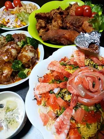 今回も長男のお嫁さんがメインになりちょこちょこと孫っち達が協力して作ってくれた楽しい料理が机の上でイルミネーションに負けないくらいの輝きを発してくれていてどこかでヘトヘトな私も元気を取り戻しました!