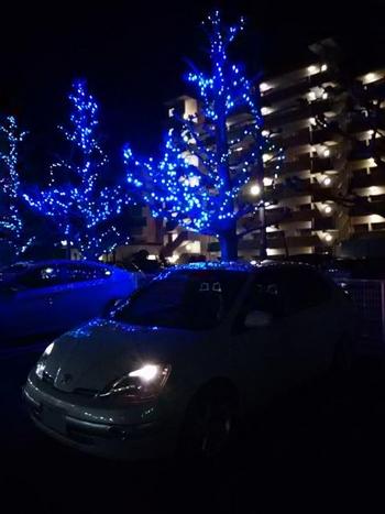 「とれたて食楽部」さんの駐車場にもブルーのLEDのイルミネーションが飾られておりましたが一昨日のフラワーパークのイルミネーションの様な迫力はありませんが何故か温かな気持ちになれ記念にパチリ!(バックのマンションの明かりも綺麗に見えます!)