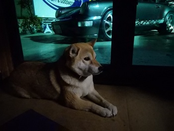 そんな昨日、前の夜に水銀灯を消し忘れてしまっていたのですがヨガマットに寝ころび外を見てみるとデモカーの空冷ポルシェと只今カスタム中の初代プリウスだけが浮き上がりとても幻想的で明暗が付きいつもよりカッコ良く見えるではありませんか!