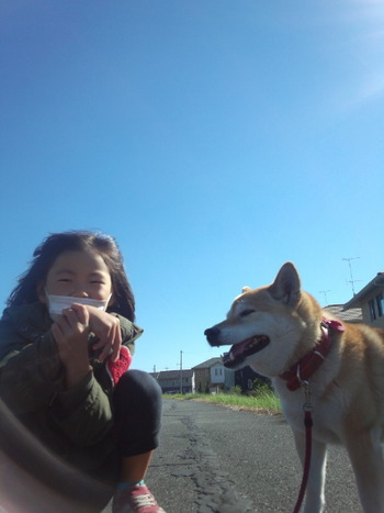 写真は唯一のプライベートタイムであった上の孫っちと愛犬ヨコネと一緒に行った散歩中の写真!