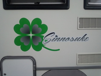 簡単なデザインではありますが完璧なオリジナルです!どのように見えるかは人それぞれですが当社のお客様で同じ様に愛車や社用車にイラストや文字を入れたい方はお気軽に相談をして頂きたいと思います!