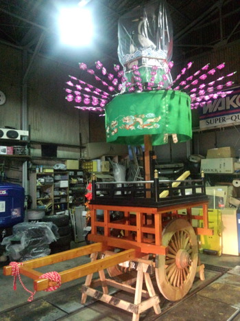 造って頂いた地元の安達建設の社長さんまで飾り付けを手伝い来て頂いたのに今朝の風雨の為に小さな「祢里」の引き回しも中止となってしまいました・・・・・・