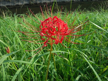 下の写真は今朝の愛犬ヨコネとの散歩中に早速見付けた「彼岸花」の写真。