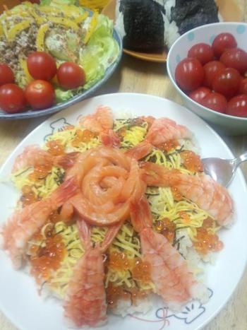 事務所内の机の上には長男のお嫁さんが用意してくれた「花火の様な料理!」が置かれとてもゴージャスな感じ!!