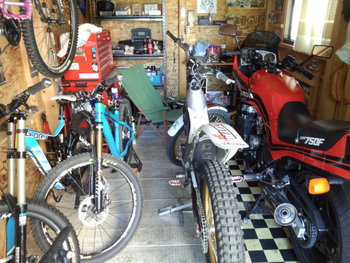 通り掛かったガレージにはとても綺麗なCBX750Fを始め彼が普段から楽しんでいるトライアルのマシンがあり他にも雪の上を走る事を目的とした珍しい自転車などもあったりと私生活をエンジョイしている感じがしてとても羨ましく思えました!