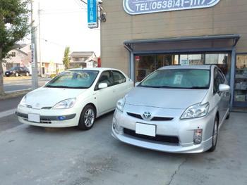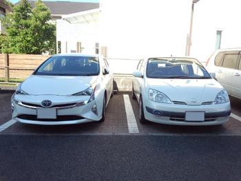 先日掛川に仕事の用事で出張に行ったところ当社の初期型プリウスと最新モデルのプリウスとが並ぶシーンがありました。