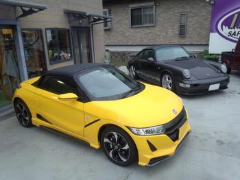 そして今回、先日納車をさせて頂いたばかりのS660を購入して頂いたお客様からエアロの取り付けの依頼があり終了後に展示場でたまたまポルシェと並べて見ると・・・・・・・現代のS660のデザインが凝っておりどちらがスーパーカーなのか解らなくなってしまうほど!(笑)