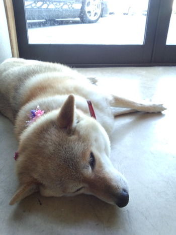 エアコンを入れてないまま朝を向かえた展示場では愛犬であり番犬でもあるヨコネが写真のようにグッタリとしていました!