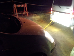 お客様が海沿いの空き地でUターンをしようとして前輪が砂にはまりスタッグをしてしまったのです。