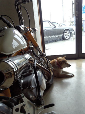 写真はまだ雨が止んでいない時の寂しそうな愛犬ヨコネ。 散歩に行けて良かった良かった!