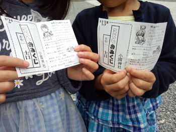 小國神社では大人の引く「自動販売機的」なおみくじがあるのですが一番端っこに子供専用のものも用意してくれており我が孫っちが初挑戦!