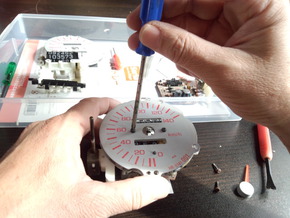 写真はトリップメーターが不良になったスピードメーターを部品取りから外したパーツで直したところ。