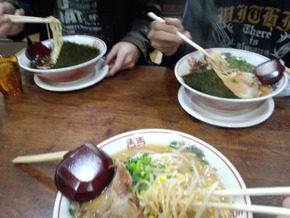 写真は黒のアルトの車探しを2ヶ月も待ってくれていたI君と、一緒に来られた車好きなお兄さんと「お祝い!」を兼ねた晩御飯を食べようと向かった当社展示場の向かいにある博多ラーメン「五鉄」さんに行った様子!