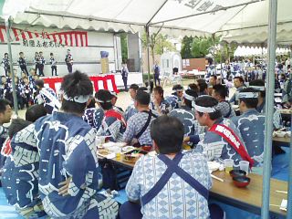 そしてステージとなるウィング式の大型トラックを会場にテントを張る前から用意をしておき、挨拶やカラオケの為の音響設備も準備。