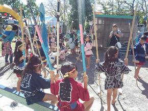 他にも年長さんが竹馬を使い祭囃子の中をはっぴ姿で障害物を越えて行く競技や年少さんの可愛いダンスなど沢山の子供達が元気に頑張る姿を見てとても感激を致しました!