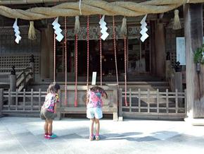まだ「二拝二拍手一拝」を教えておりませんが「神様にご挨拶をして!」と私が言うと鈴を元気に鳴らしながらしっかりと一拝をしておりました。