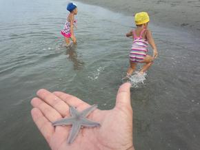 「海は砂があってベタベタするからキライ!」と言う方々も多い気がしますが子供達がこの様なヒトデに驚いたり貝を拾ったりする事は海でしか出来ない事なのです。