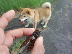 そんな愛犬ヨコネとの本日の朝の散歩中に道路に上向きで転がっているアブラゼミを見つけました。