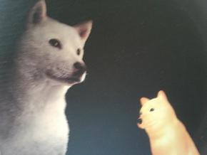 中から出てきたのは明らかにその物事態が電球で光る雰囲気がプンプンの白いワンちゃんの置き物で箱にも「光るお父さん犬」と書かれておりました。