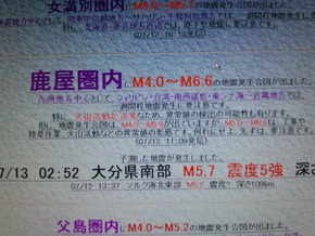 昨日も九州方面に大きな地震の合図が出た事を伝えていたと思えば実際に・・・・・