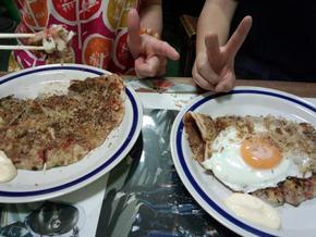 情けない事に私は「焼きそばの中」を注文致しましたが、目の前に並んでいるそれぞれトッピングの違う「特大!」のお好み焼きを見てただ圧倒されるばかりでした。