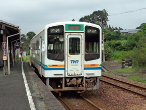 駅に到着すると何と1時間に1本程しか通らないといわれるディーゼルエンジンのTH2100型気動車(ディーゼルエンジン)が駅に入って停まるではありませんか!