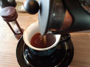 そして待つ事3分、慣れない儀式!?でコーヒーをカップに移しました。