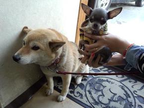 大きな犬でも抵抗無く向かって行く姿はきっと「沢山の犬の仲間と一緒に暮らしていた」のではないかと言う想像を致しました。