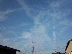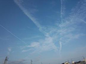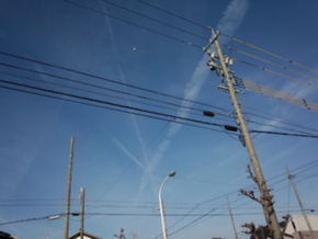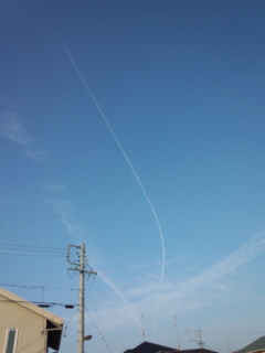 しかし私が愛犬ヨコネの散歩に出発する頃になると普段の青空の朝には飛んでいない飛行機が突然現れ怪しくて不思議な飛行機雲をバンバン出し始めました・・・・・