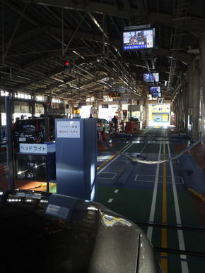 慣れの問題もありますがいきなり入り口で「ヘッドライトテスター」となりますので入り口から「真っ直ぐ!」に入る事が大切。