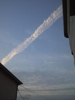 写真は「エア・フェスタ浜松2014」の行われる前の土曜日と当日の日曜日、更に昨日の3日間に殆ど見れなかったのに本日の夕方にいきなり登場の低空に出る怪しい飛行機雲!