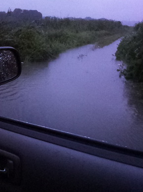 写真は我社の北川の東名高速道路の側道(鷲巣・村松方面)ですがもう道路が15センチほどの深さの水に浸かっている場所もありました!
