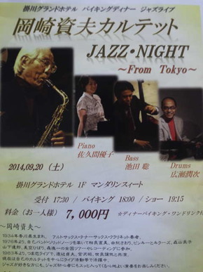 ベースに池田聡さん! ピアノに佐久間優子さん!ドラムスに広瀬潤次さん!この方々が揃うことは中々無く、岡崎資夫さんが今回のライヴにいかに力を入れて頂いているかが伝わるようです!