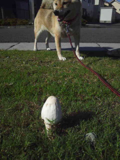 今日の愛犬ヨコネとの散歩中に広い堤防沿いの草むらに白く光る物体を見つけました!