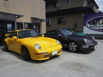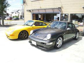隣の当社デモカーの空冷ポルシェ911タイプ964は何と22歳!!