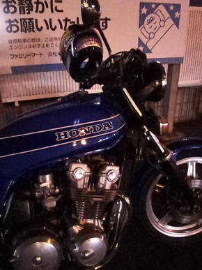 コンビにでは偶然に止めた後の看板に排気音に対する警告が優しく書かれていて一瞬ひやりとしましたが、今では新品で手に入れる事の出来ない希少なノーマルマフラーの私のCB750Fはどうやら気にしなくても良さそうで安心を致しました!(笑)