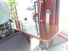 勿論、鉄の骨組みを溶接し作ってくれた職人さんも、当社メカニックがお客様の要望に応えた停止状態でも常に100ボルトの電源が使える様にしたシステムも凝っていて素晴らしいのですが、やはりその仕事を最後に隠してしまうボックスとボードを手作業で作ってくれた大工さんが凄い!