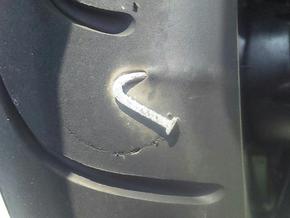 初めに刺さった時にはまだ釘がまっすぐだった事もタイヤのキズから知ることが出来ます。