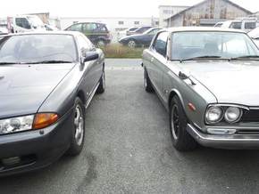 そんな今回のご紹介は当社の従業員さんのお父さんが大切に乗っている通称「箱スカ」でお馴染みの懐かしの名車46年式スカイライン2ドアハードトップと、以前に私が中学校のPTA会長時代にお世話になり今でもご家族でお世話になっている校長先生の息子さんの乗るR32スカイラインGTS-t タイプMの偶然に並んだ2台!