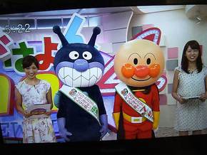 昨日の早朝のニュース番組にいきなり登場したアンパンマンとバイキンマン!