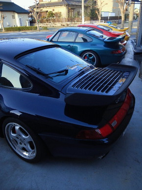 当社のデモカーの993はフロント・サイドにエアロ、車高を若干低めにし珍しく往年の名車である930ターボのスポイラーがあえて取り付けられていました。