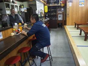 そしてミゼットIIの登録を終えご主人さんのお店の「もつ焼き 桐林」に到着。