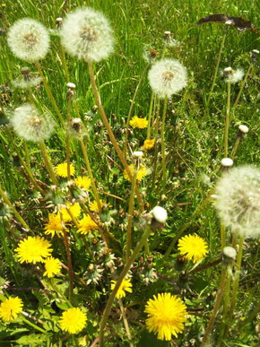 完全に地元自慢の桜は散ってしまいましたがその桜の木の下や道沿いの堤防には花見が出来そうなほどの色々な花が咲いています。