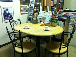 自然なウッドの風合いが気持ちいい猪股自動車整備株式会社の待ち合いスペース
