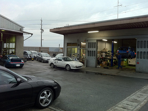 こちらが創業50年を迎える本社認証整備工場。レアな車が多数入庫しています!